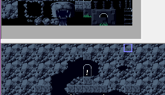 The Map Editing tile set: The tile set menu shows the current stage’s tile set that can be accessed. Clicking on a tile will put you in paintbrush mode and clicking on any non-entity tile will modify that tile with the currently selected one.